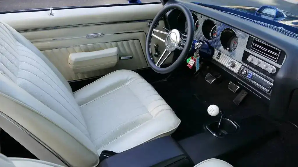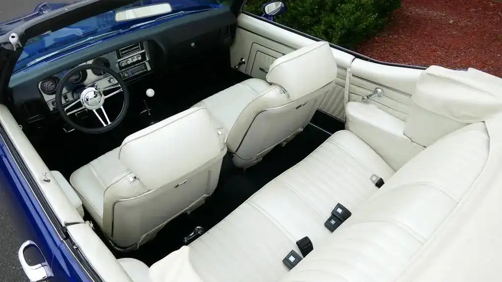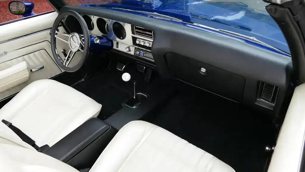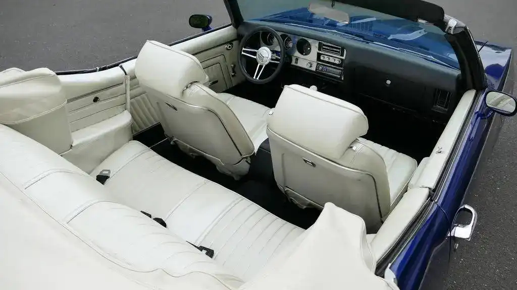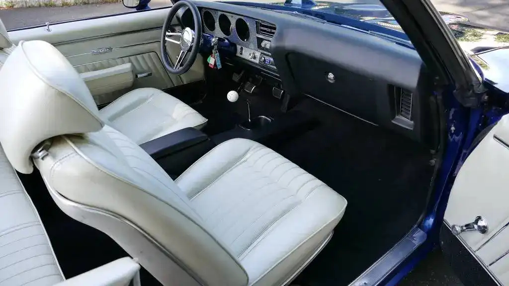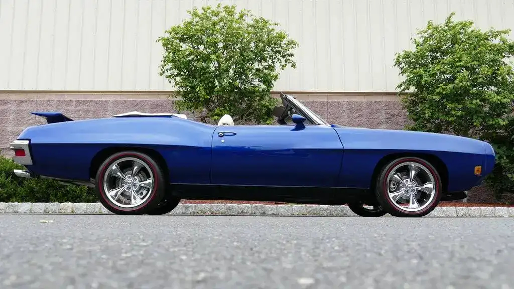 This 1970 GTO Convertible restomod represents the ultimate fusion of classic American muscle and modern performance technology. With its fuel-injected LS2 power, Tremec 5-speed transmission, and comprehensive suspension upgrades, this professionally built GTO delivers reliable, high-performance driving while maintaining the iconic styling that made the Goat legendary. The stunning Electron Blue finish, white convertible top, and custom interior create a head-turning package that’s equally at home on the show field or the open road.