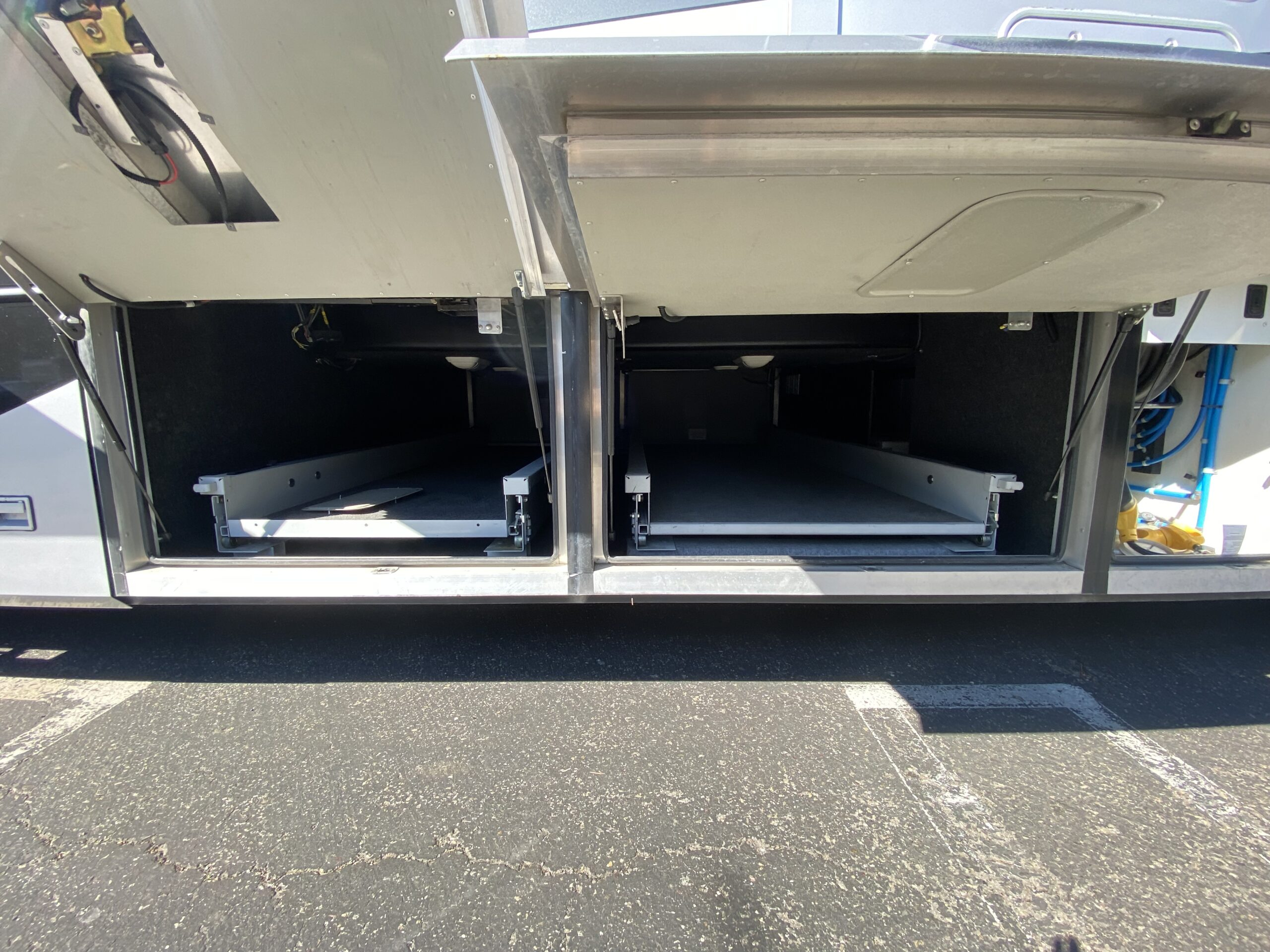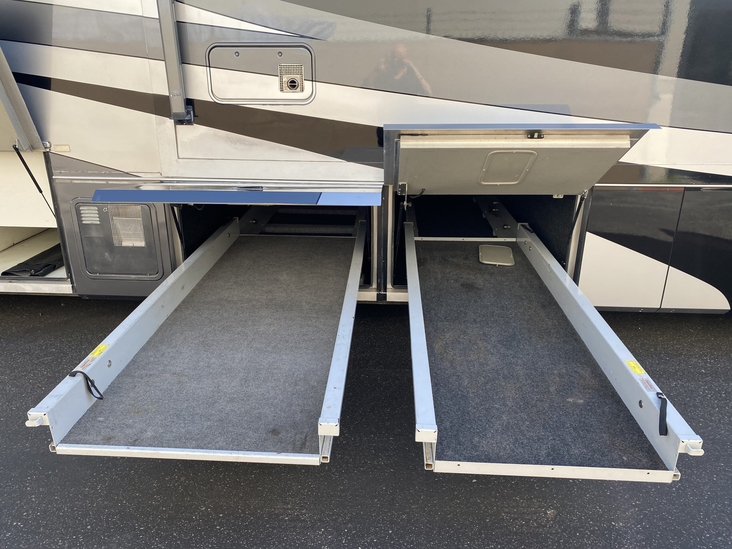 - Storage Solutions with pass-through storage and slide-out trays