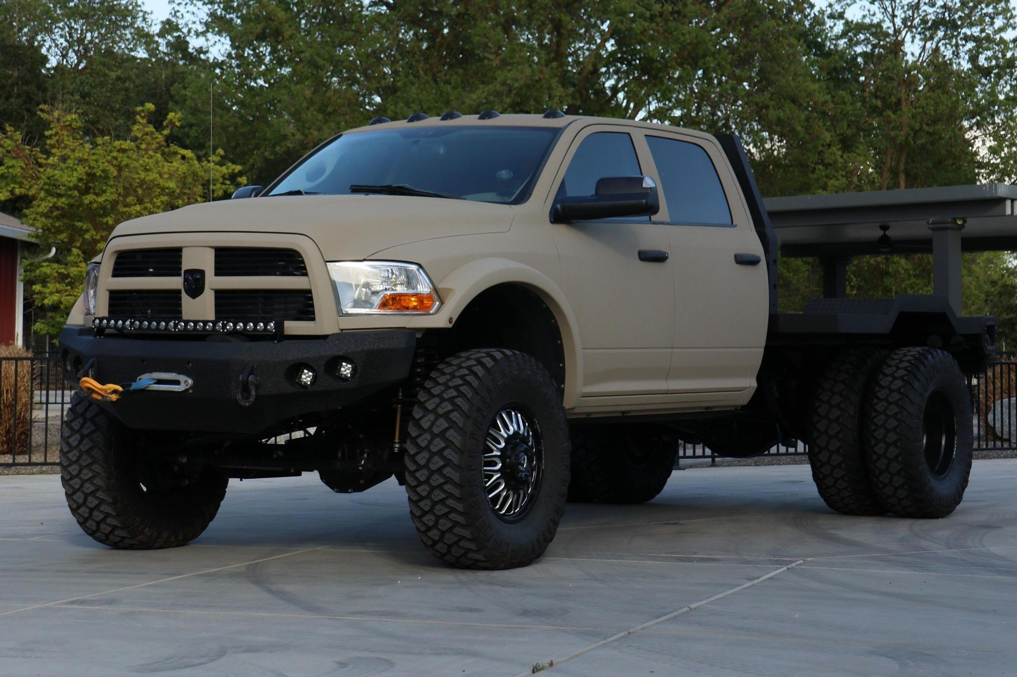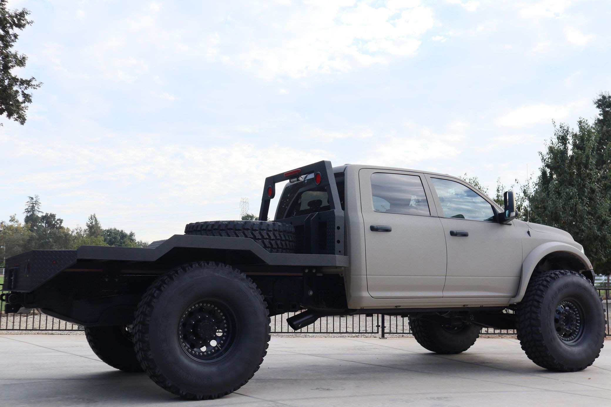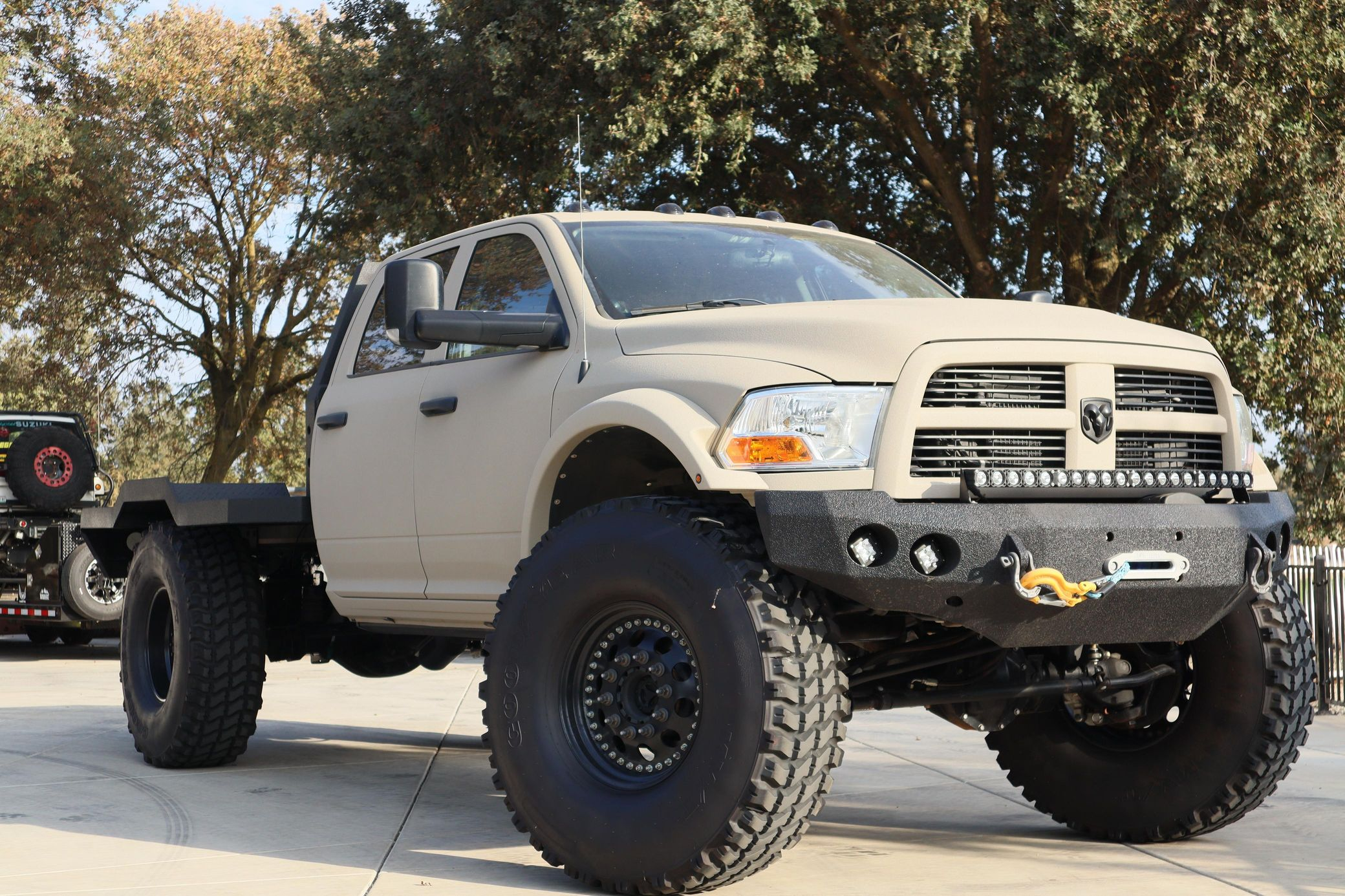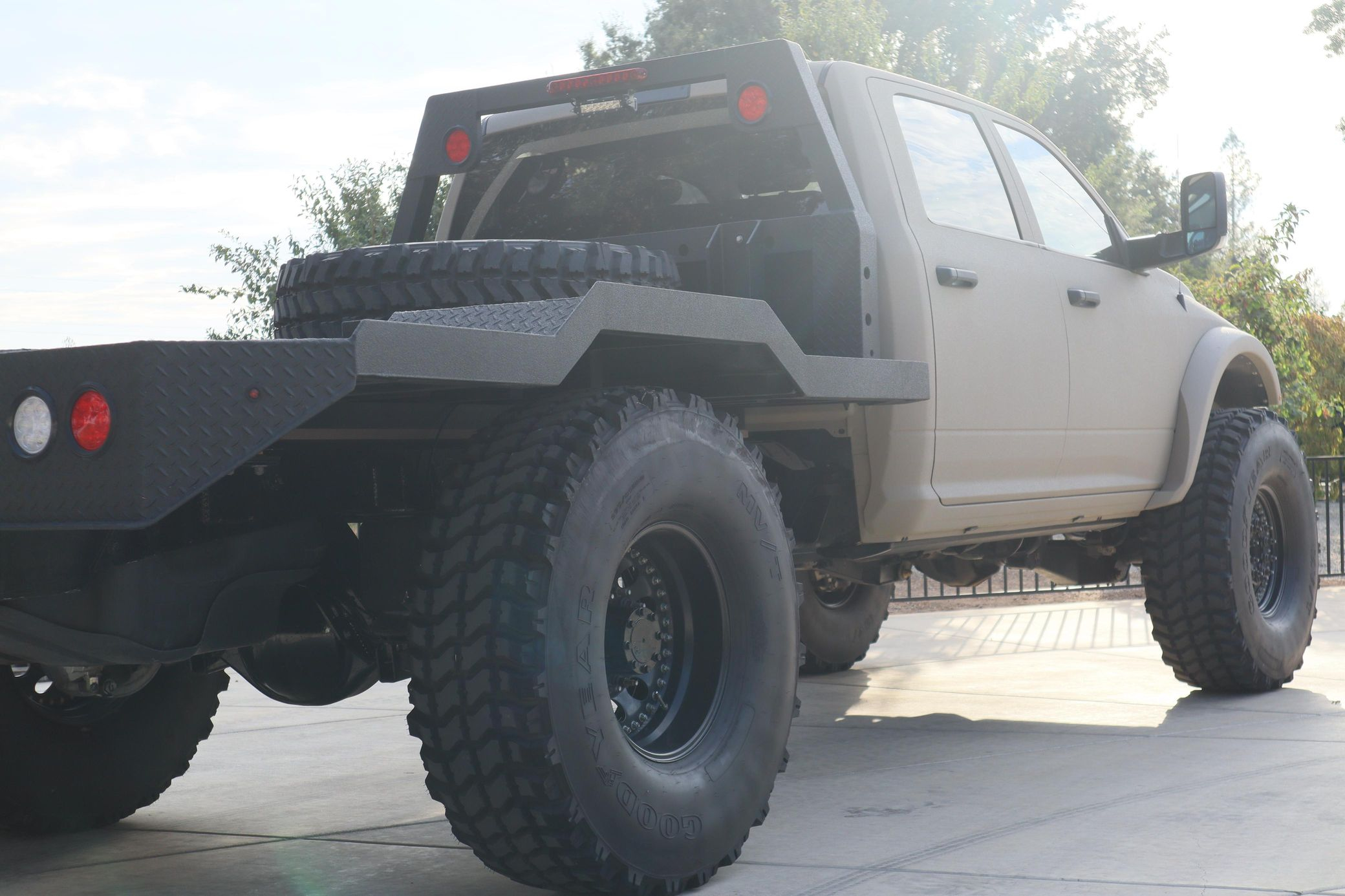 - Showcasing a custom flatbed and aggressive off-road stance