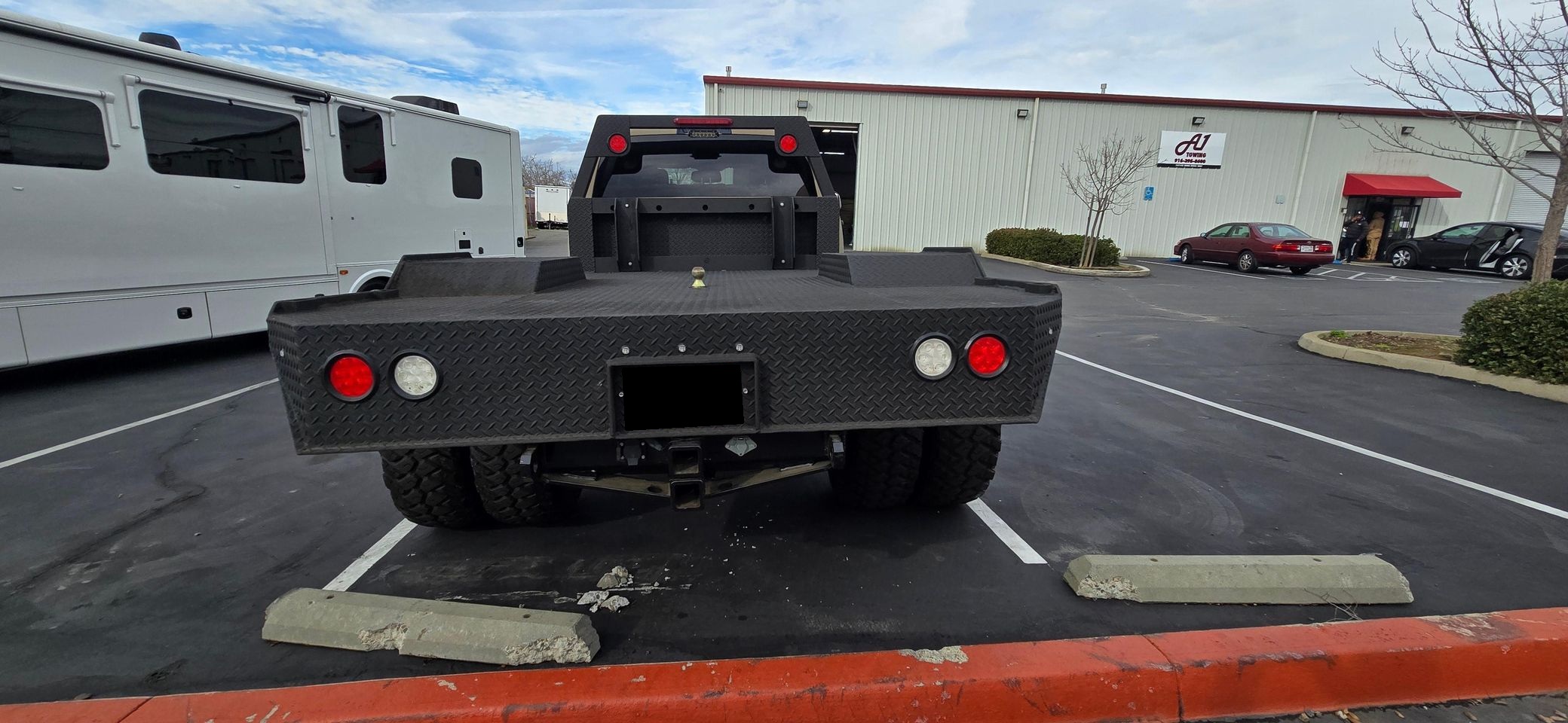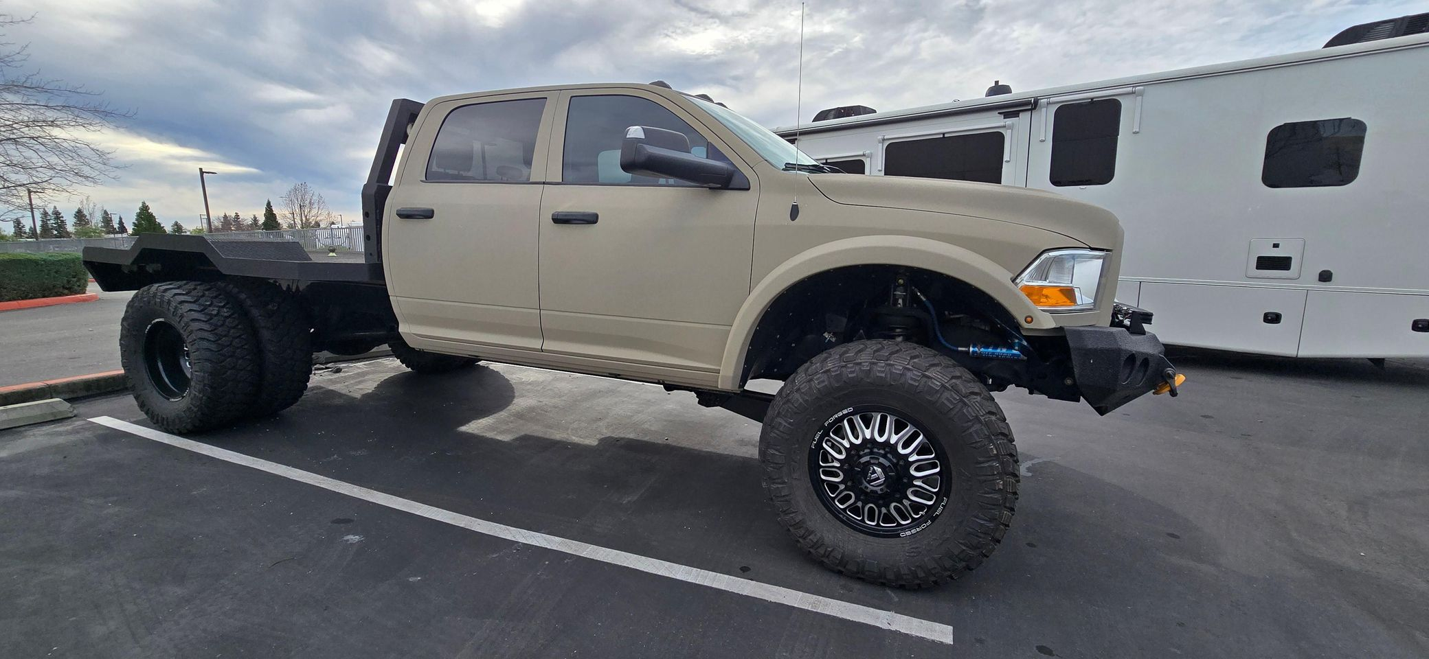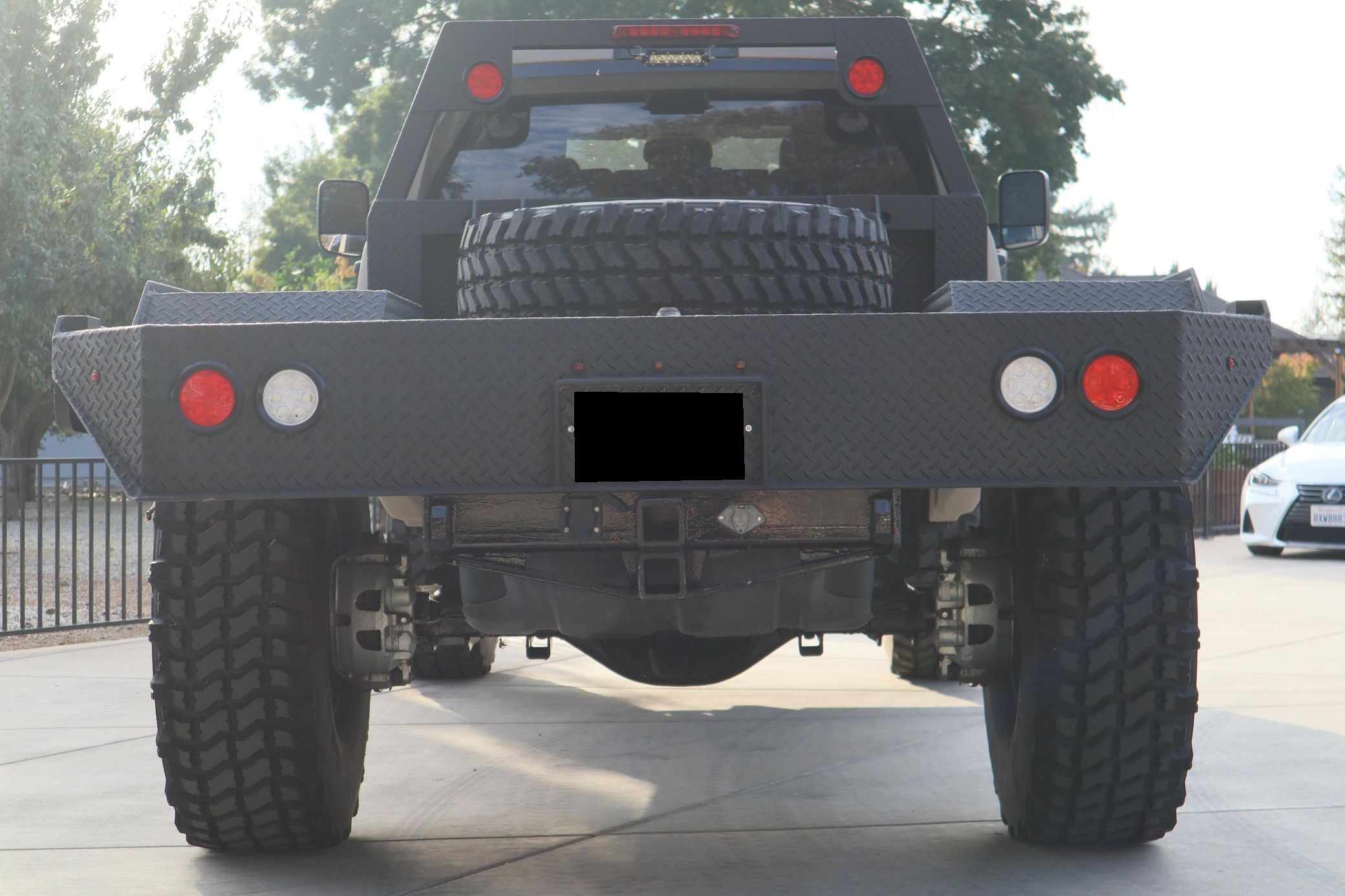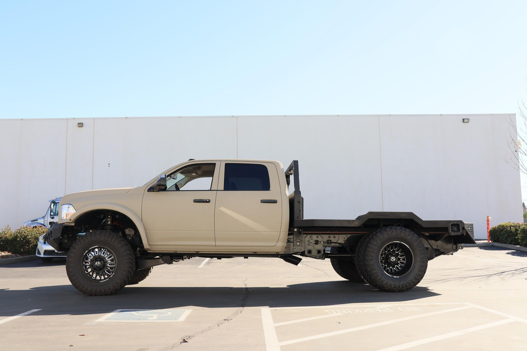 - Showcasing a custom flatbed and aggressive off-road stance