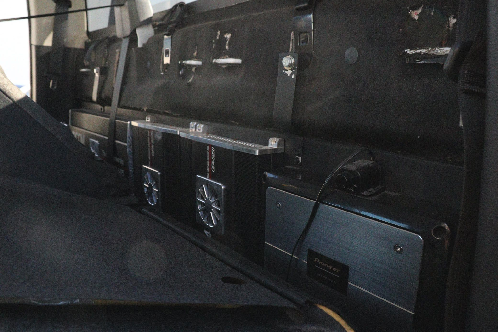 - Interior: B&M Magnum Grip shifter and transmission temp gauge. Pioneer sound system with ADCOM amp. 300-lbs of Dynamat sound deadening.