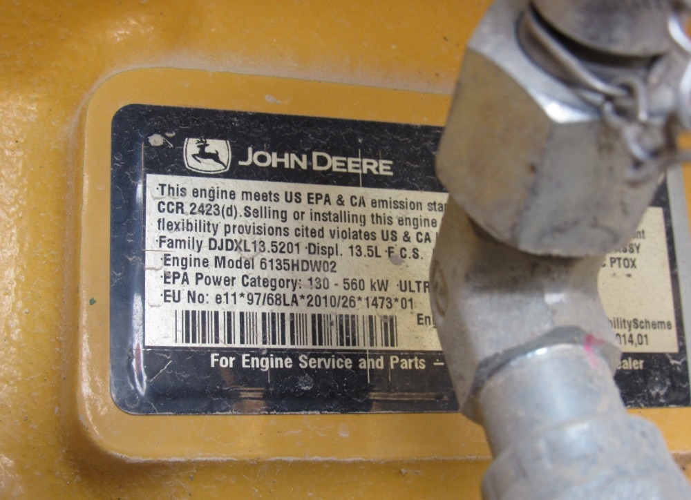 - 380 HP John Deere 6135HDW02 Tier 4 Diesel Engine – Exceptional power with new turbo and injectors