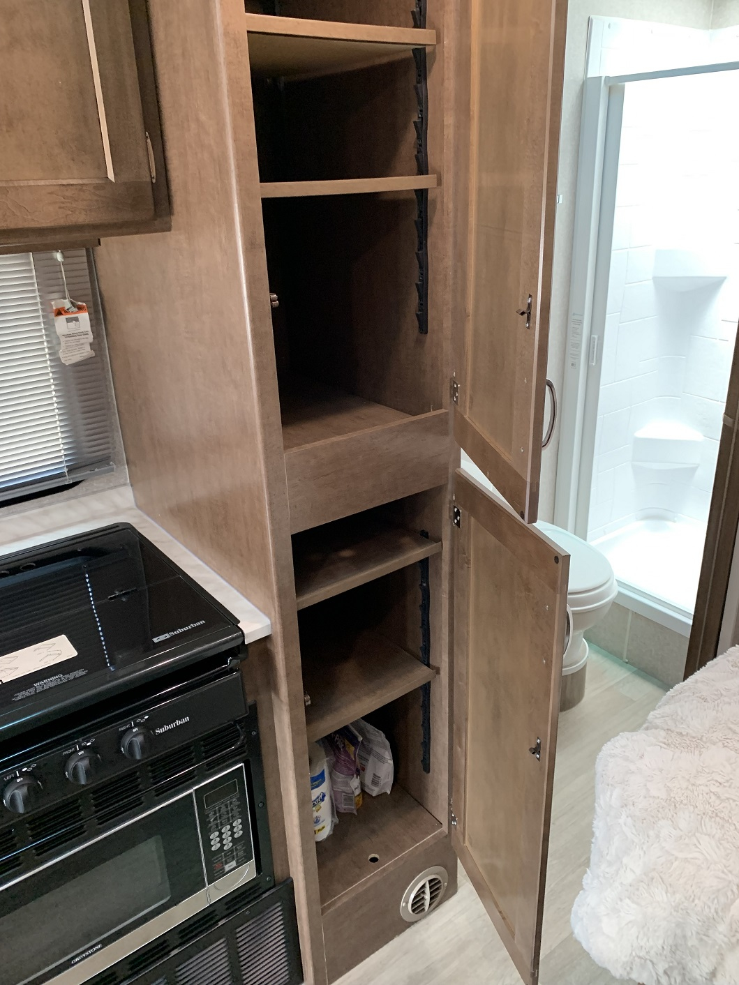 - Powered roof vent and pleated night shades on all windows
