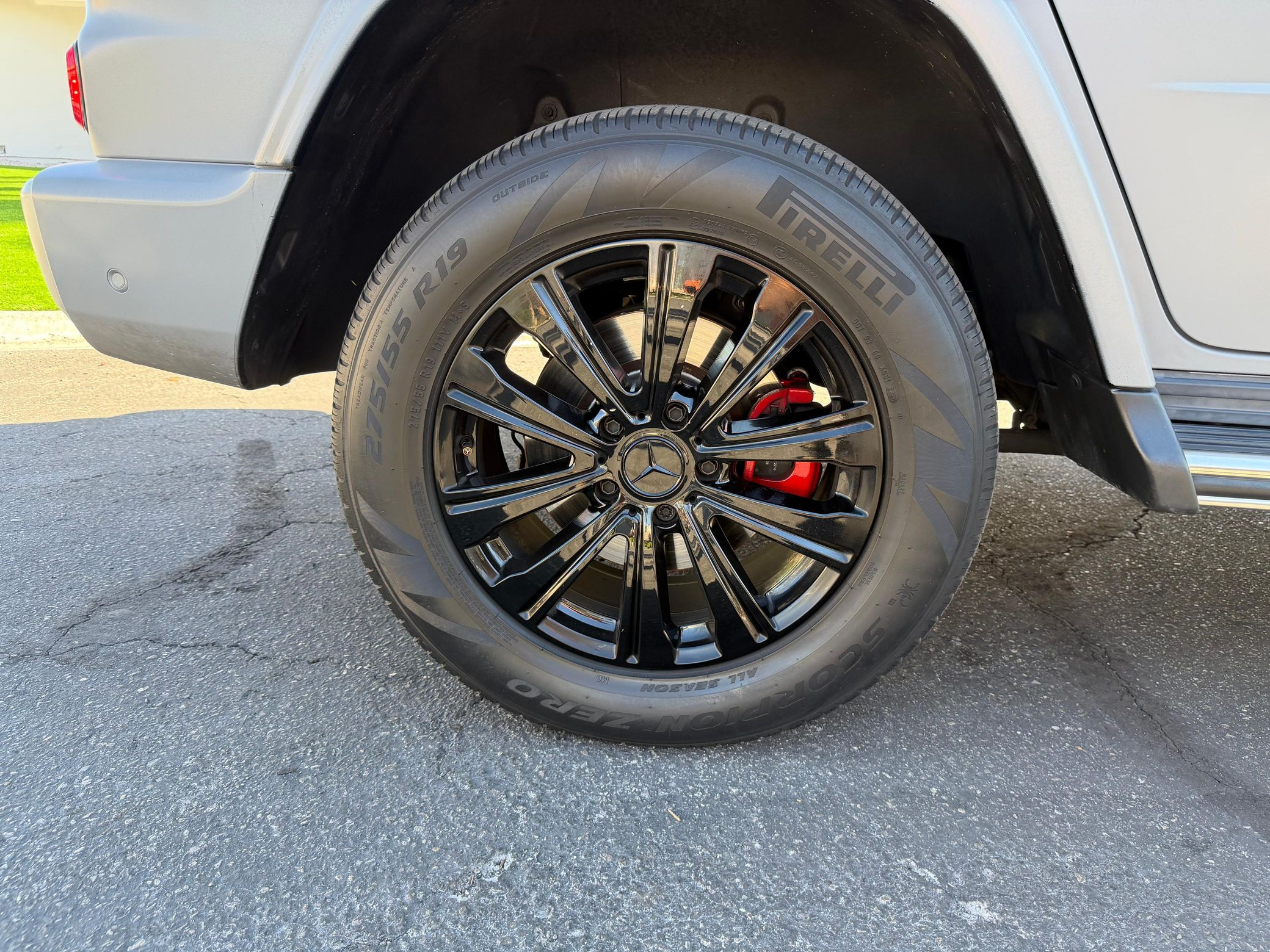 - Black-painted factory 19-inch wheels