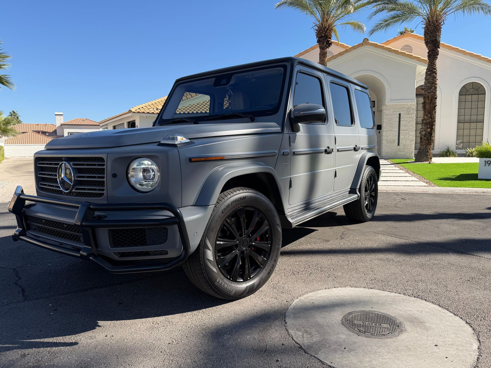 - 2021 Mercedes-Benz G550 in Lunar Blue with gray Plasti-Dip wrap