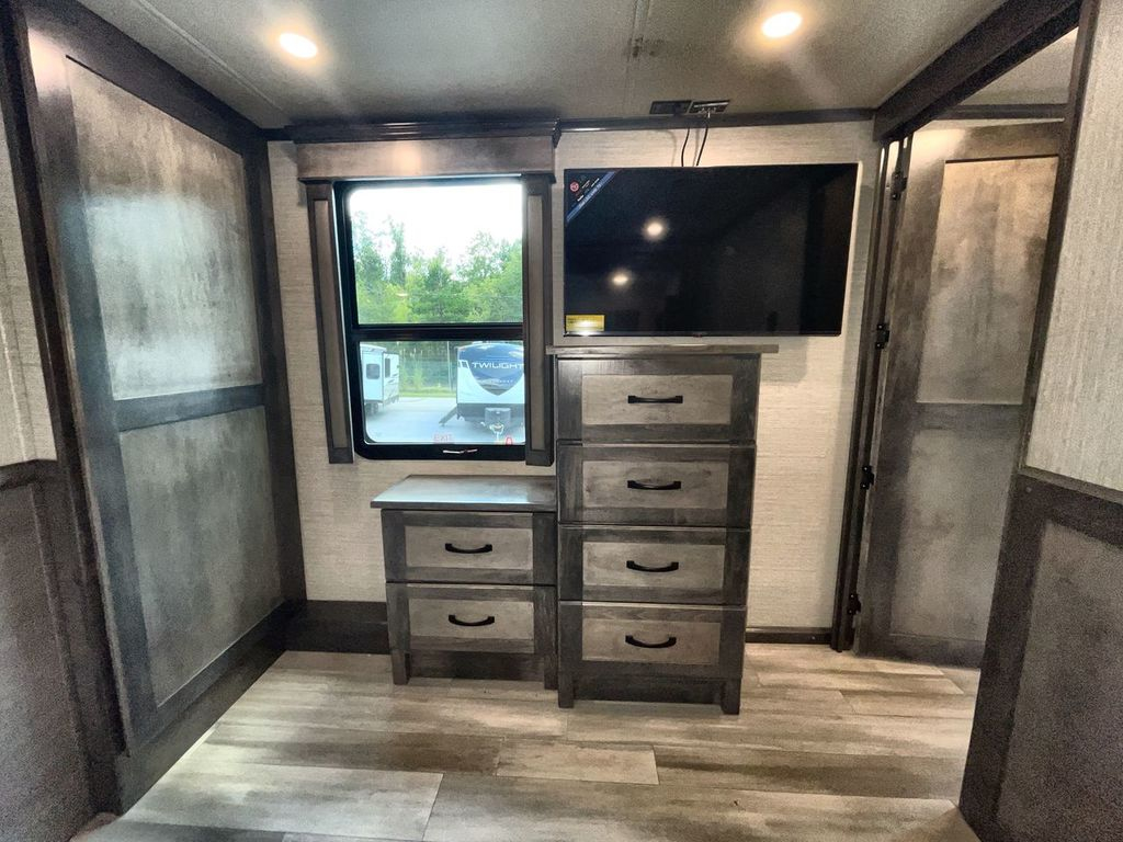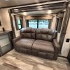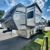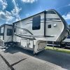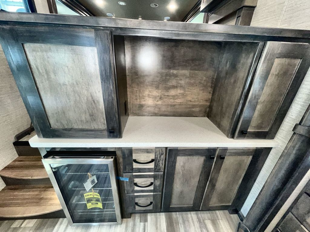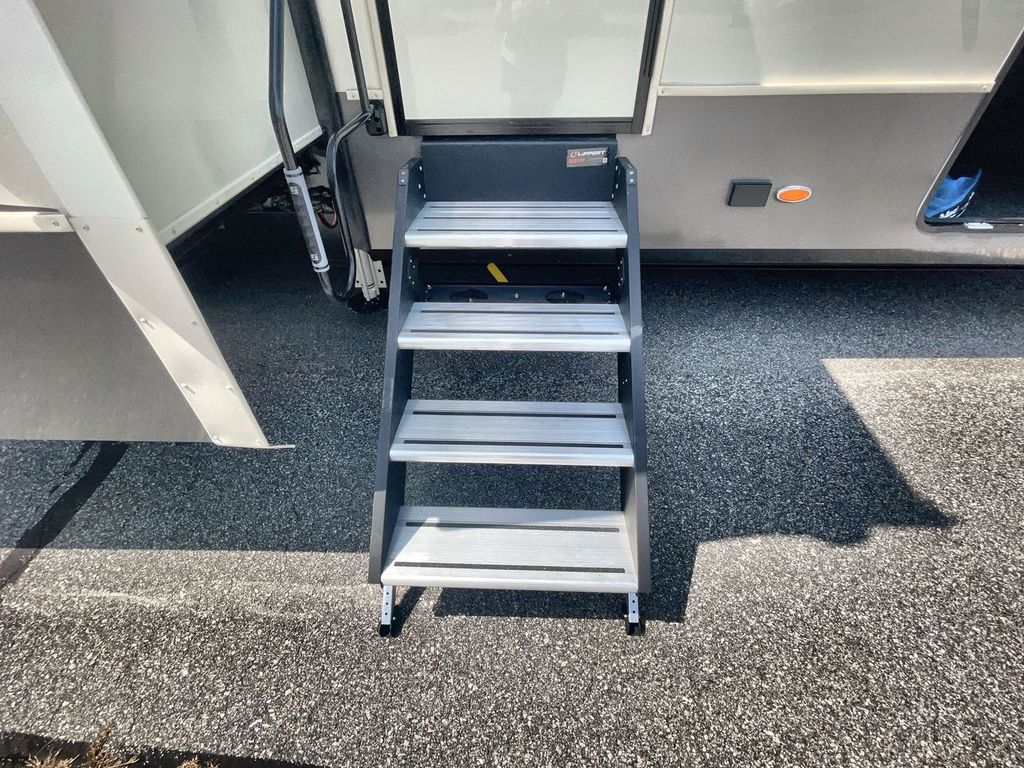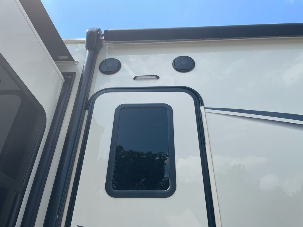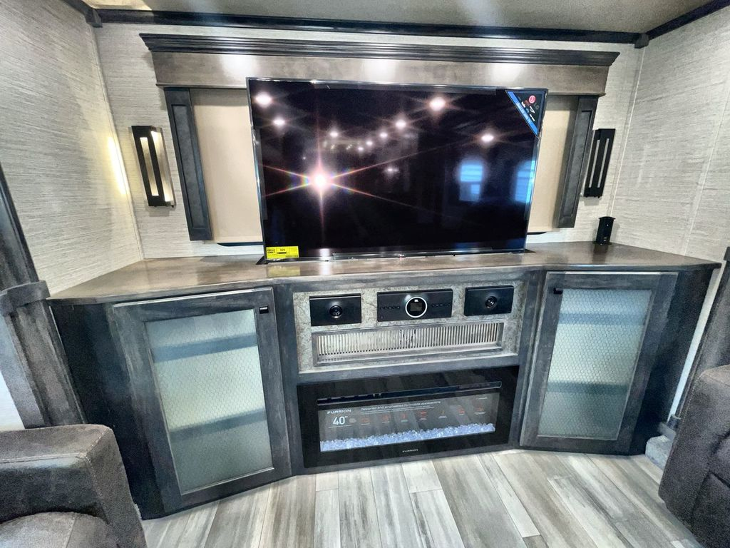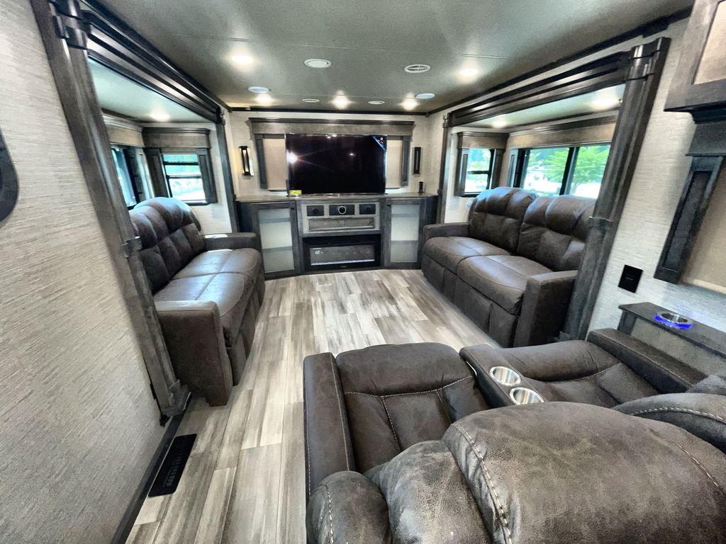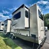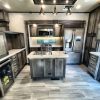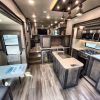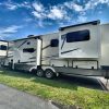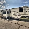 This fifth wheel stands out with six-point auto-leveling for precision stabilization, central vacuum system for whole-unit cleaning, 2″ receiver hitch for towing capability, and residential-grade everything. A luxury home on wheels with every high-end amenity for full-time living, offering the perfect combination of comfort, technology, and premium features.