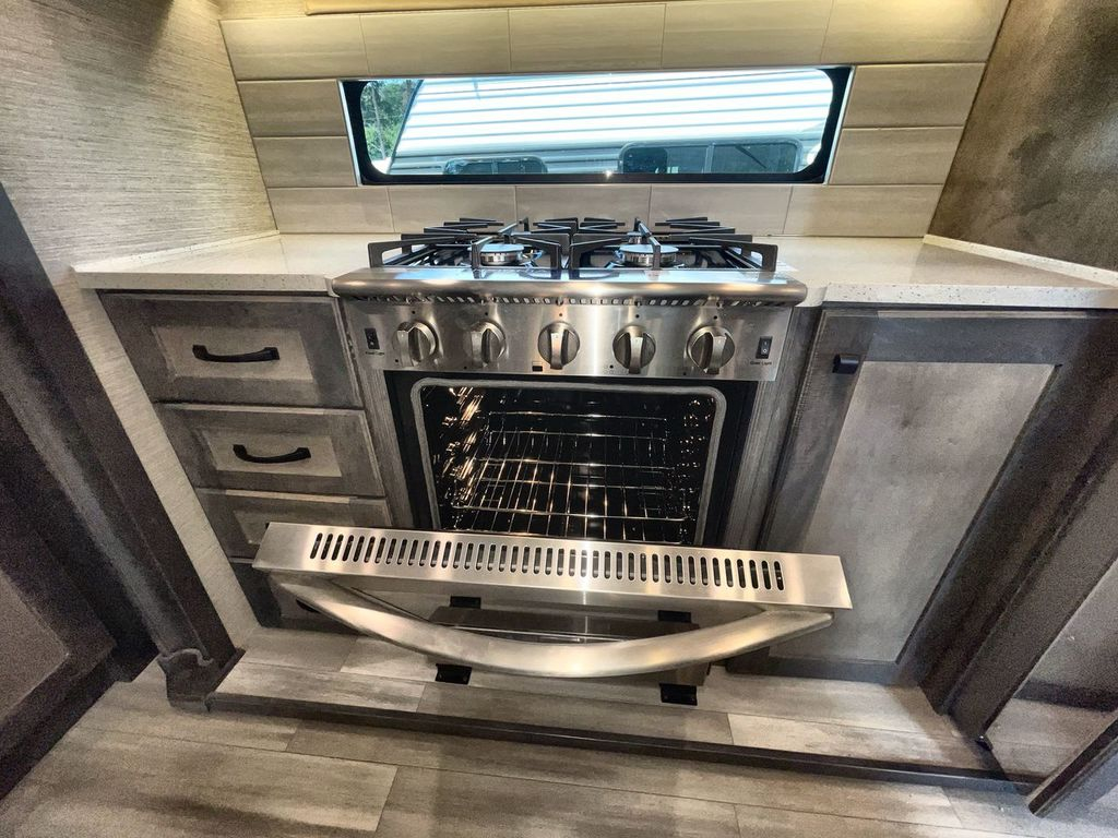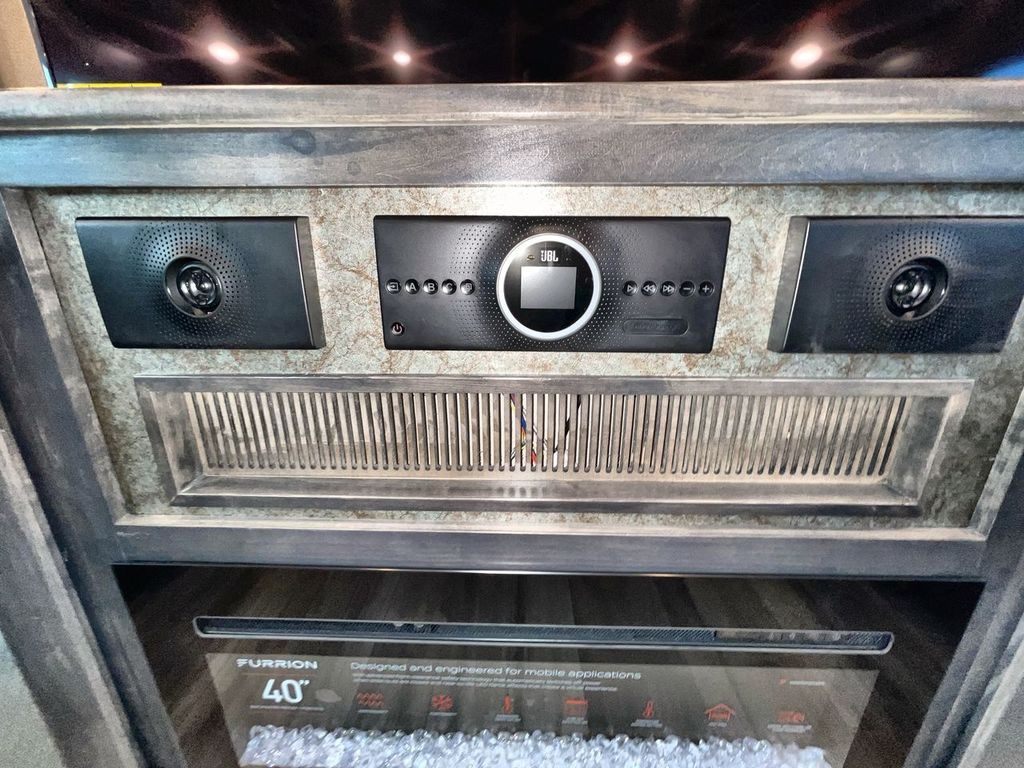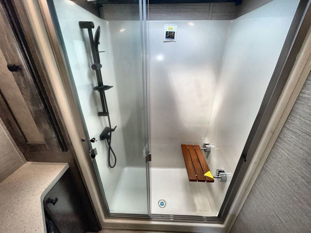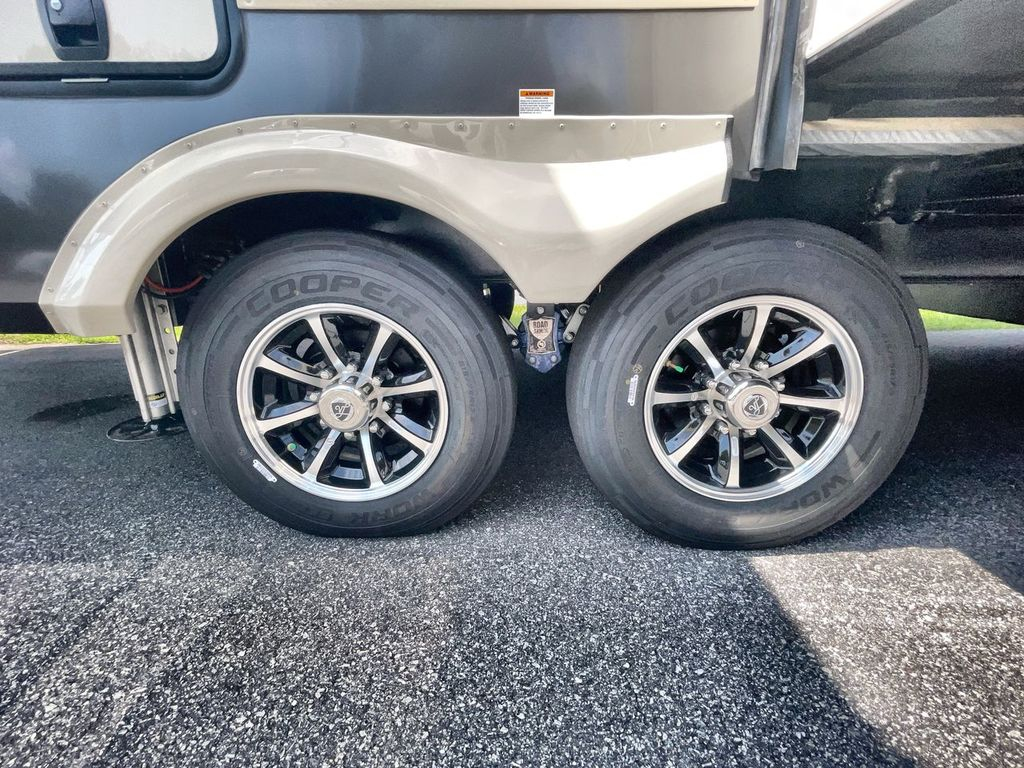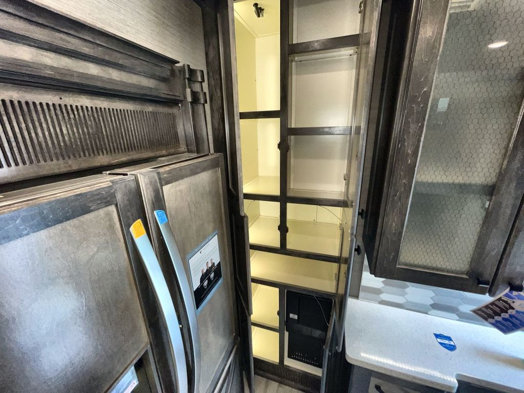 This fifth wheel stands out with six-point auto-leveling for precision stabilization, central vacuum system for whole-unit cleaning, 2″ receiver hitch for towing capability, and residential-grade everything. A luxury home on wheels with every high-end amenity for full-time living, offering the perfect combination of comfort, technology, and premium features.