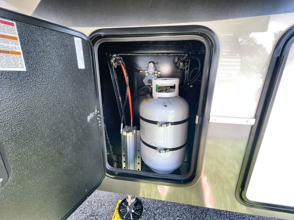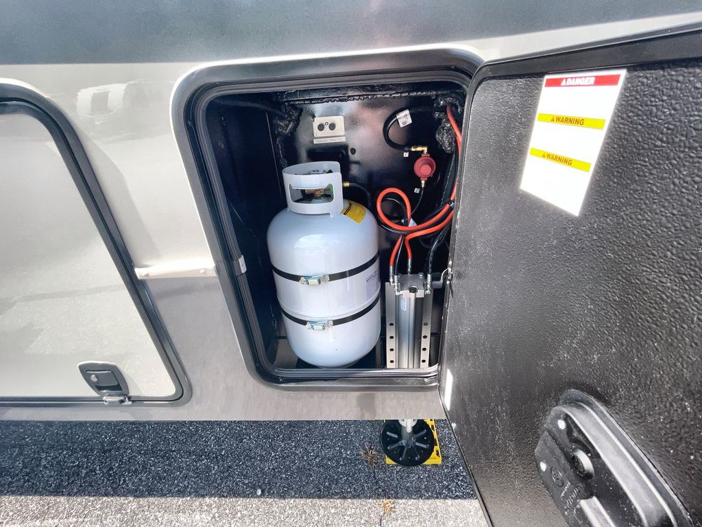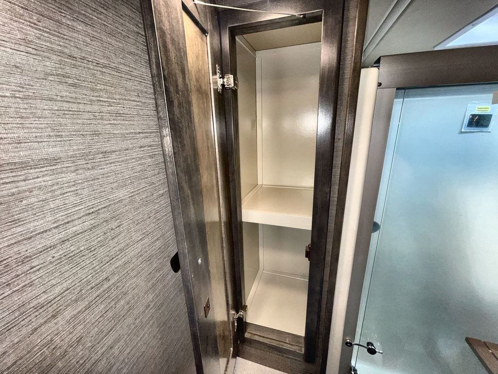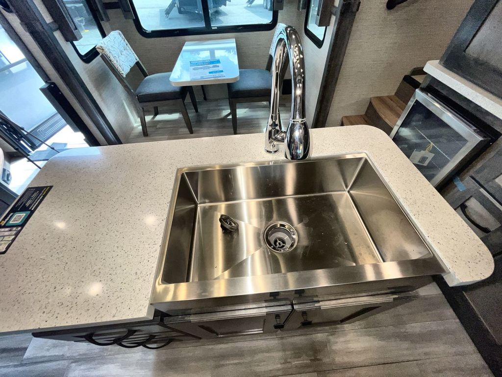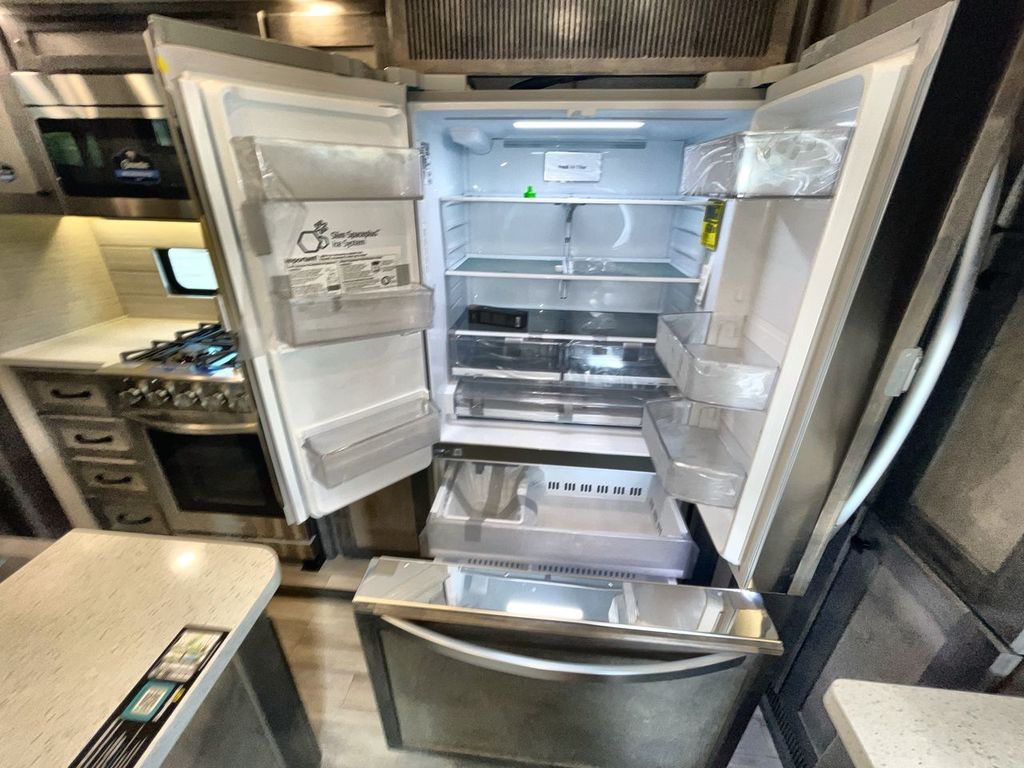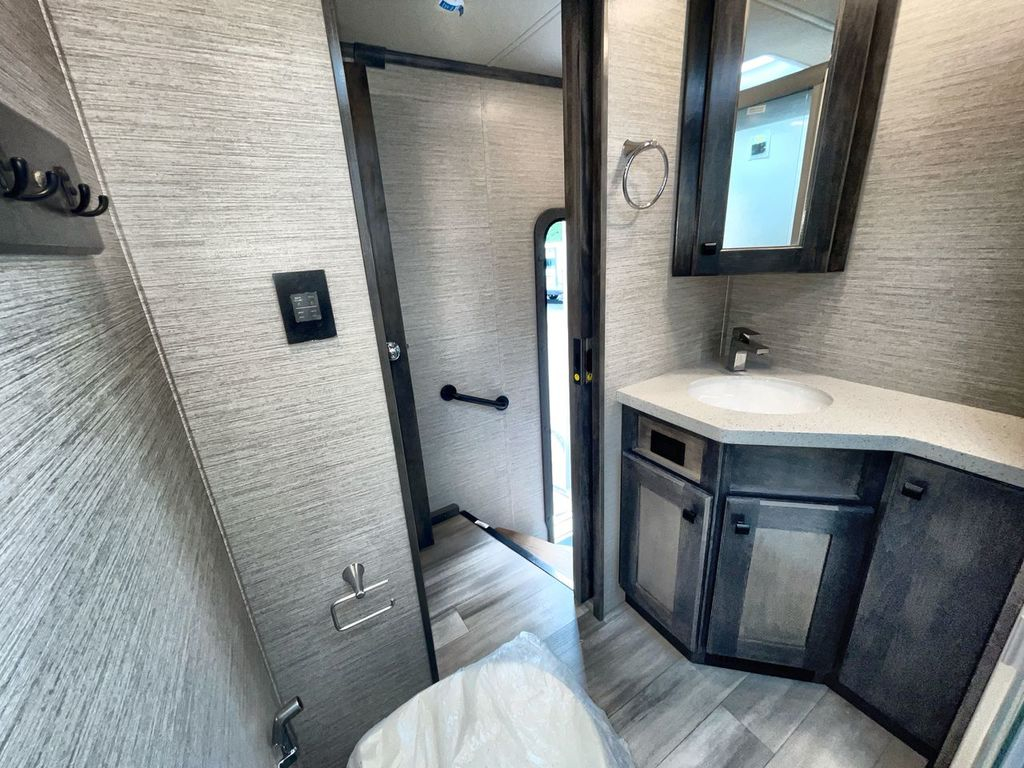This fifth wheel stands out with six-point auto-leveling for precision stabilization, central vacuum system for whole-unit cleaning, 2″ receiver hitch for towing capability, and residential-grade everything. A luxury home on wheels with every high-end amenity for full-time living, offering the perfect combination of comfort, technology, and premium features.